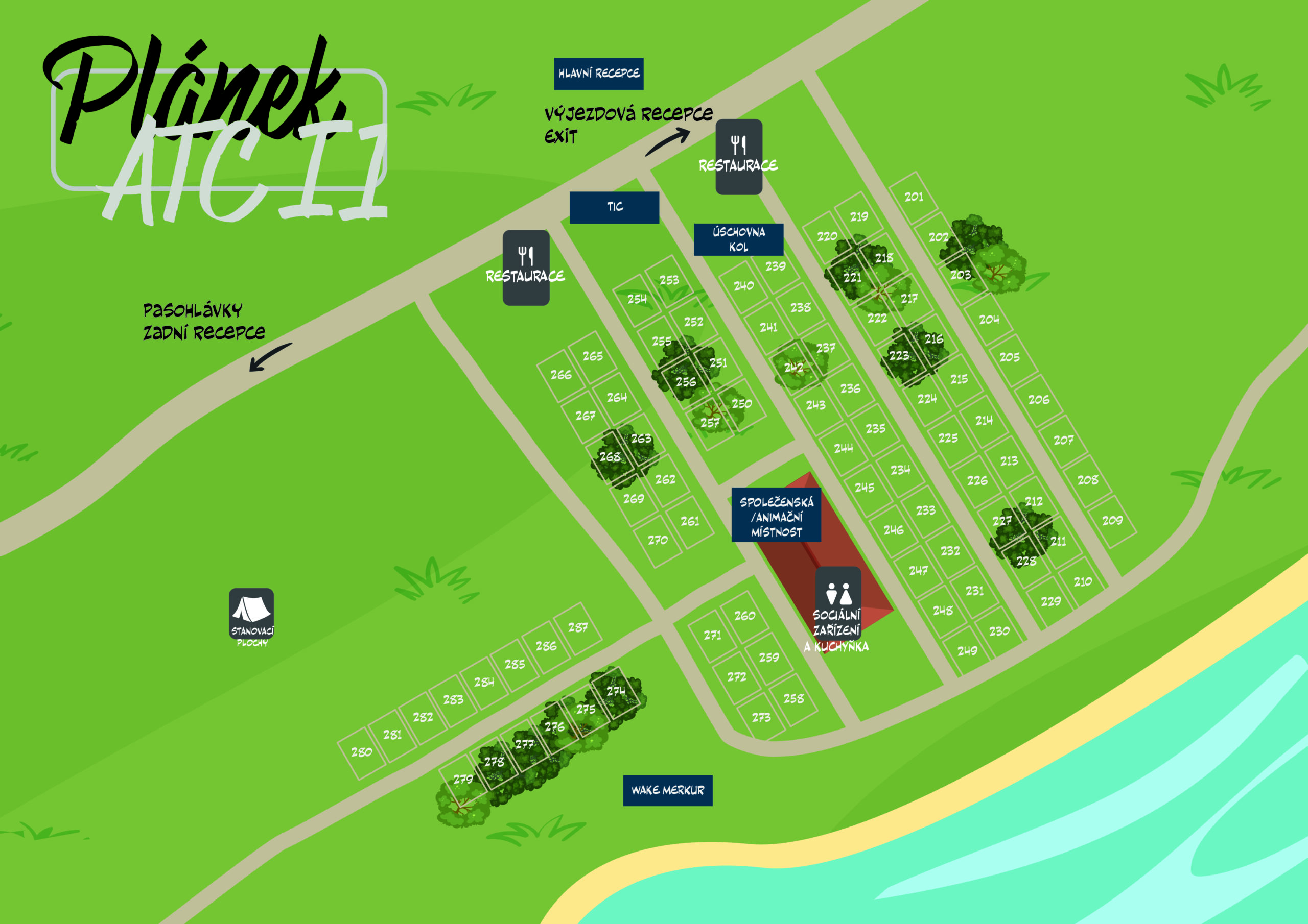 Prostor ATC I je v přední části kempu v blízkosti jezera a Velké Laguny, kde jsou číslované boxy ohraničeny živým plotem. Jedná se vždy o dvojbox, kdy jednotlivý box má velikost 8,7 x 7,3 m. Elektrická přípojka se platí dle skutečné spotřeby.