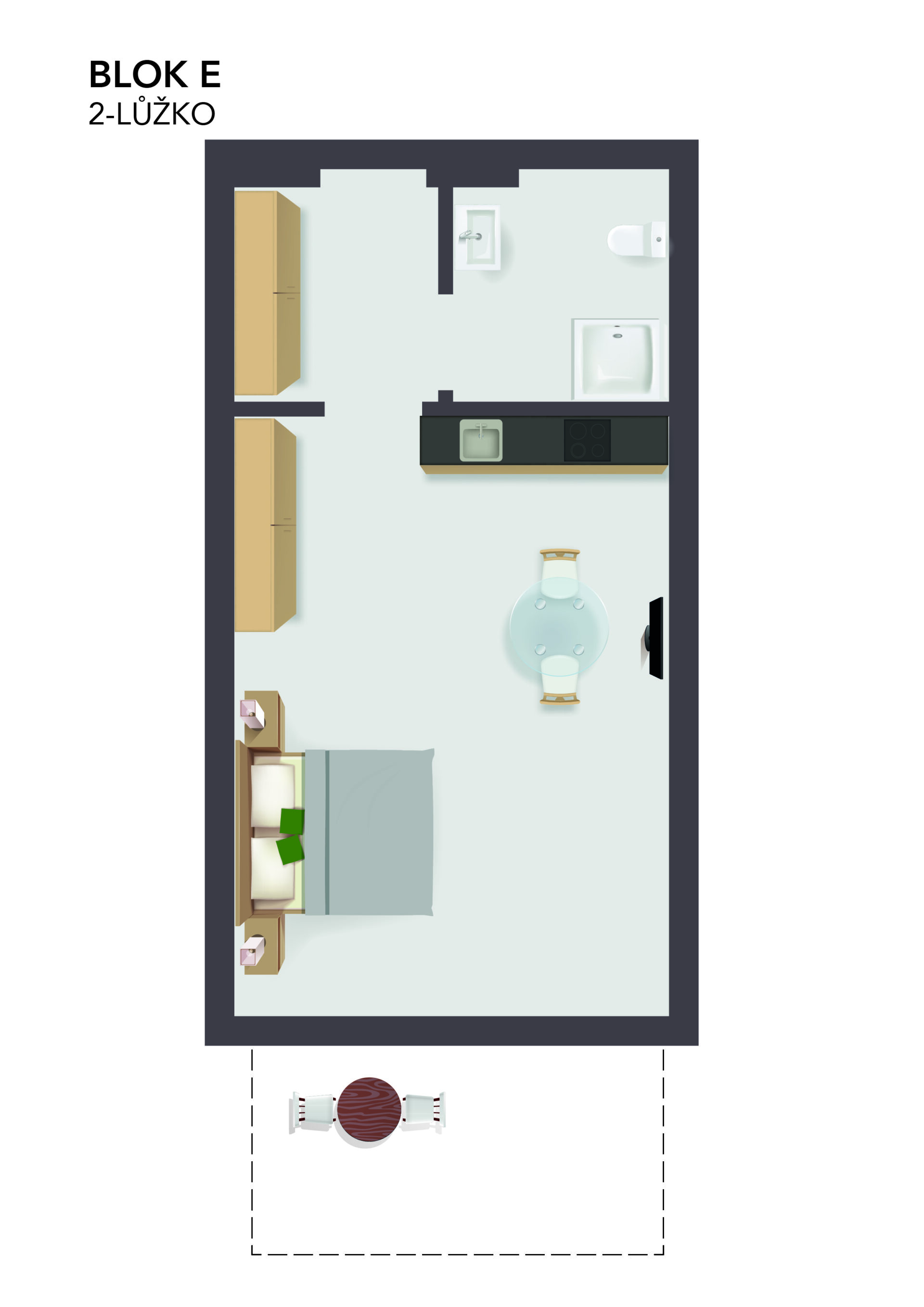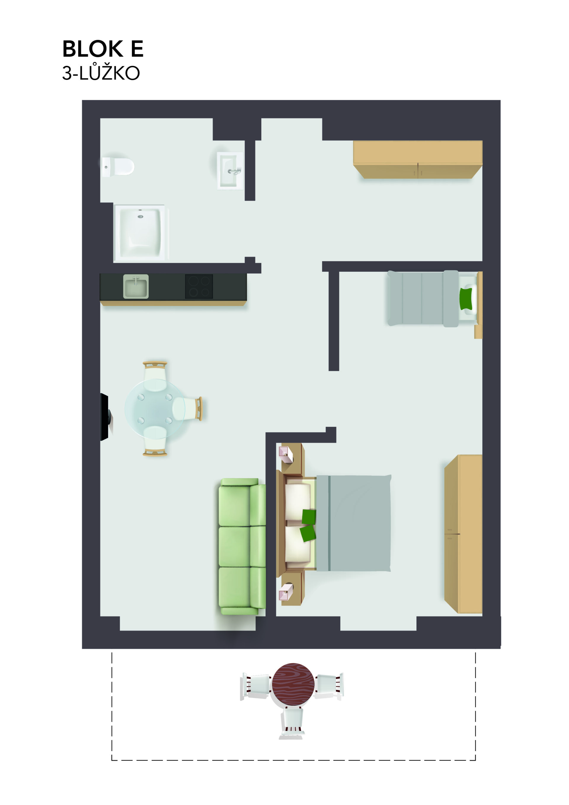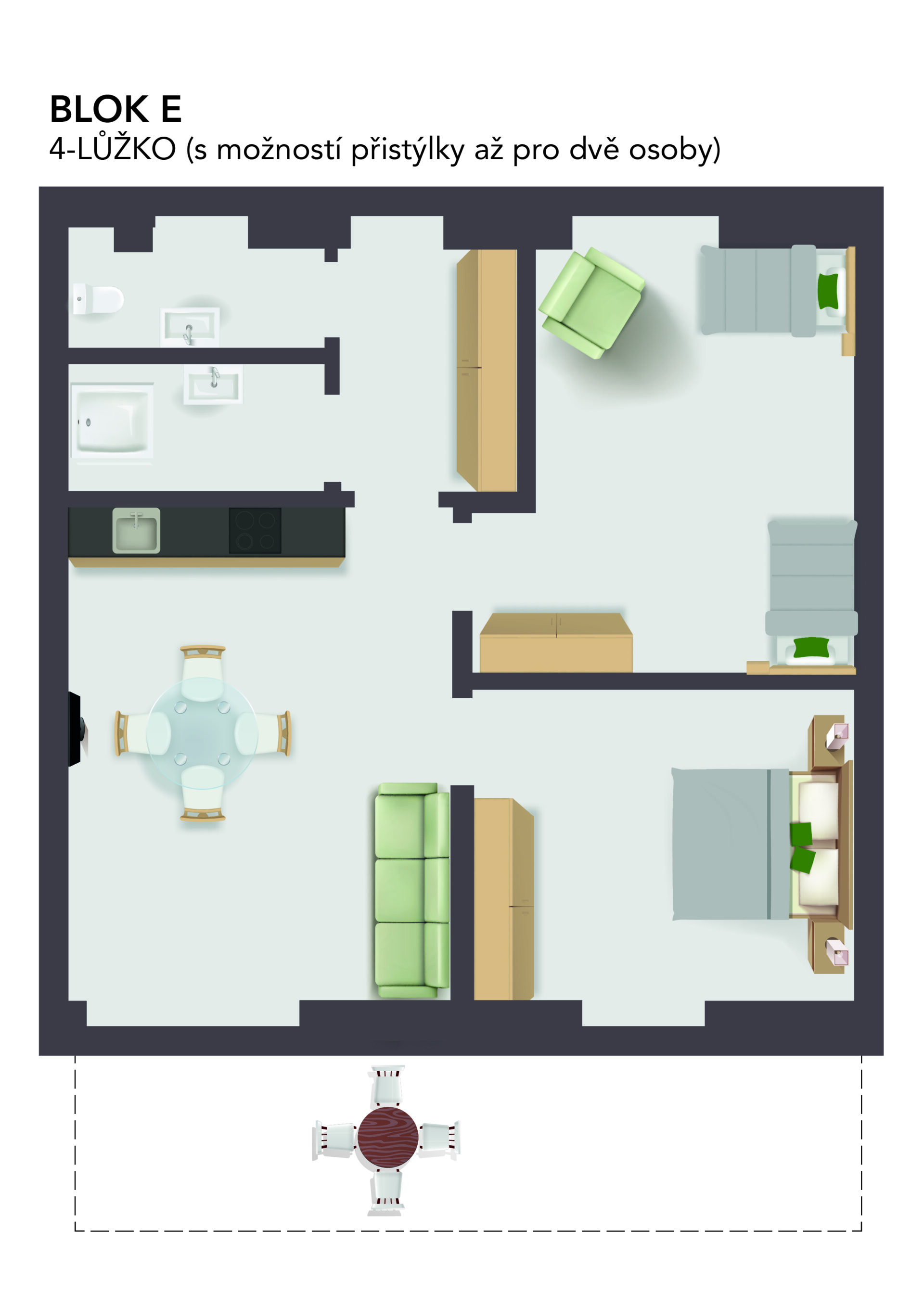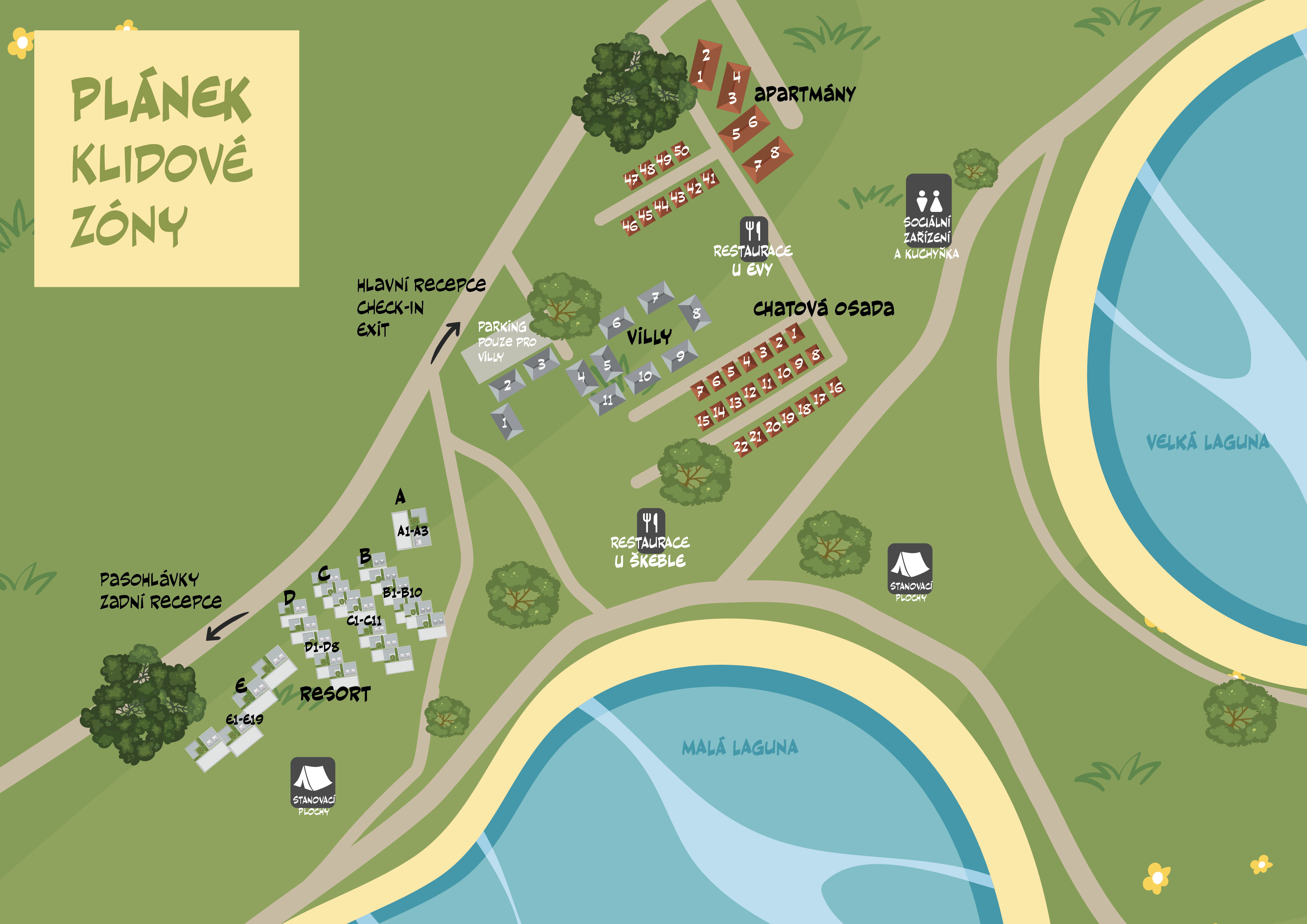 Nově postavený resort (2026) se nachází u malé laguny v klidové zóně. Jedná se o 51 pokojů v pěti komplexech s kapacitou přes 180 lůžek (s přistýlkami). Pokoje jsou 2, 3 a 4-lůžkové s možností přistýlky až na 6 lůžek. Součástí jsou také tři pokoje pro ZTP. Každý pokoj má terasu a venkovní posezení.